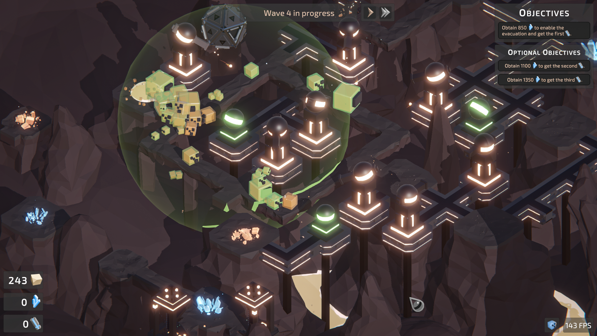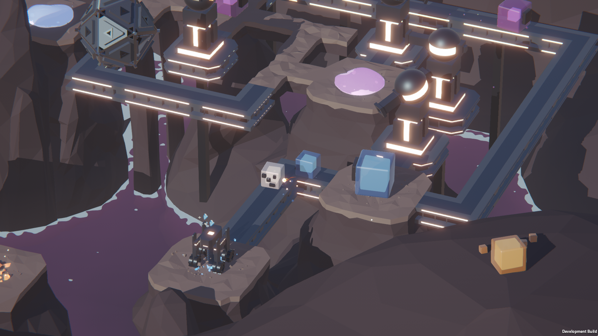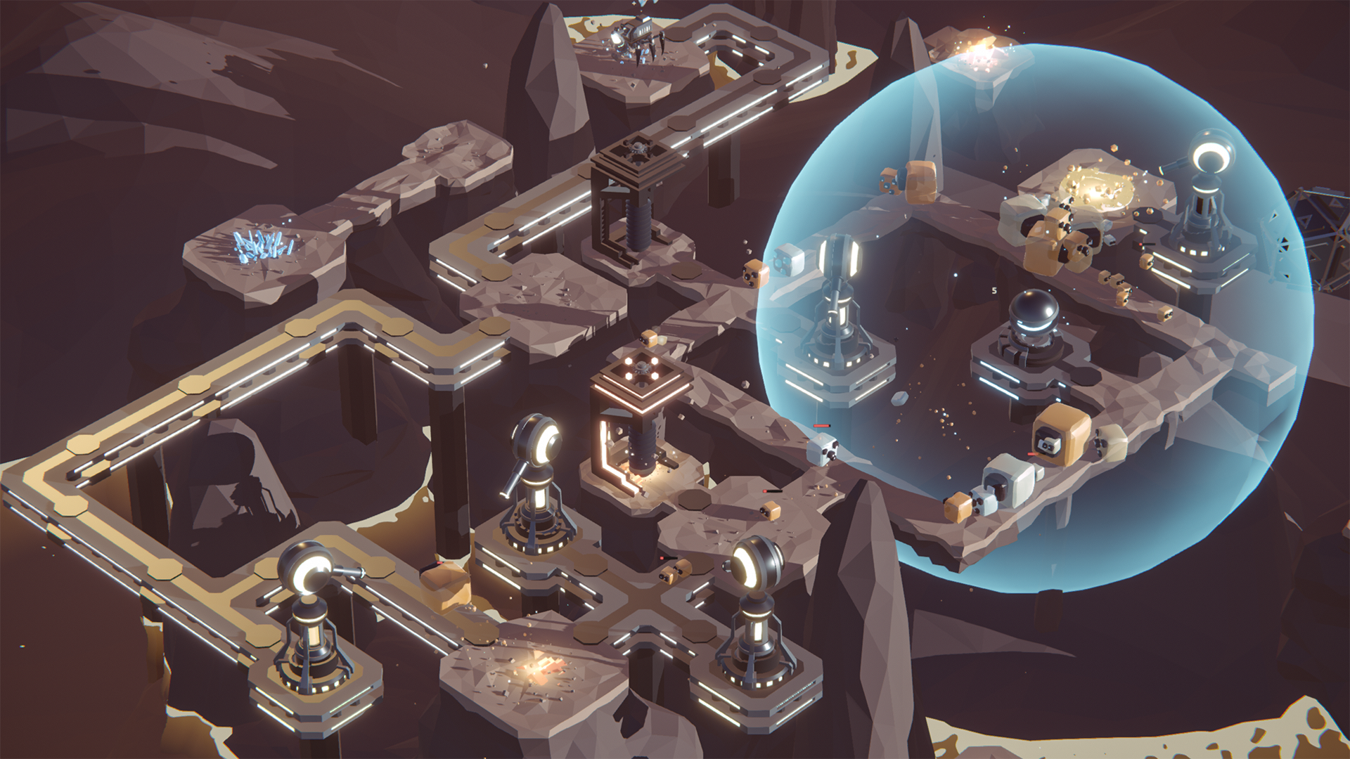Enemies of W.A.R.D. vary not only in their physical capabilities but also in inteligence. The not-so-smart ones prefer longer paths, while others are difficult to predict. They can even interact physically — jumping over, climbing, or pushing one another to get to your Excavator, no matter what.